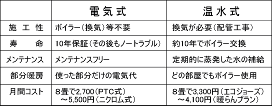 電気式と温水式の違い