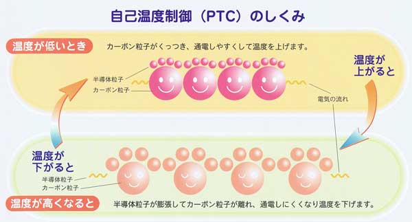 自己温度制御(PTC)床暖房システム